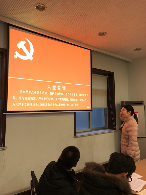 最后發(fā)展對象宣誓,她高亢激昂,聲音久久回蕩在會(huì)議室里,真正展現(xiàn)出了對黨的崇高敬意。